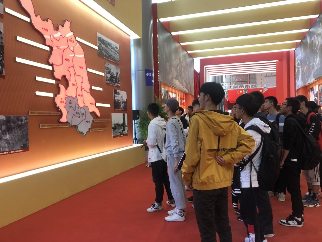 10月15日下午,伟德BETVLCTOR1946部分师生走进南京国际博览中心,集中参观“礼赞新中国 奋进新时代——江苏省庆祝中华人民共和国成立70周年成就展”。活动由我们2018级辅导员盛秋旭老师带队,2018级40余名学生积极参与。