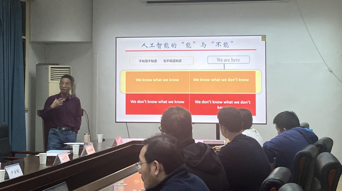 在交流环节,参会教师徐劲松、毕辉、张子成、王周生等老师就AI工具选型、数据安全隐私、伦理边界等问题与陈蕾教授纷纷展开热烈讨论。他鼓励青年教师主动拥抱技术变革,将AI作为教学创新的协作者,而非替代者,逐步构建属于自已的AI增强型教学模式。